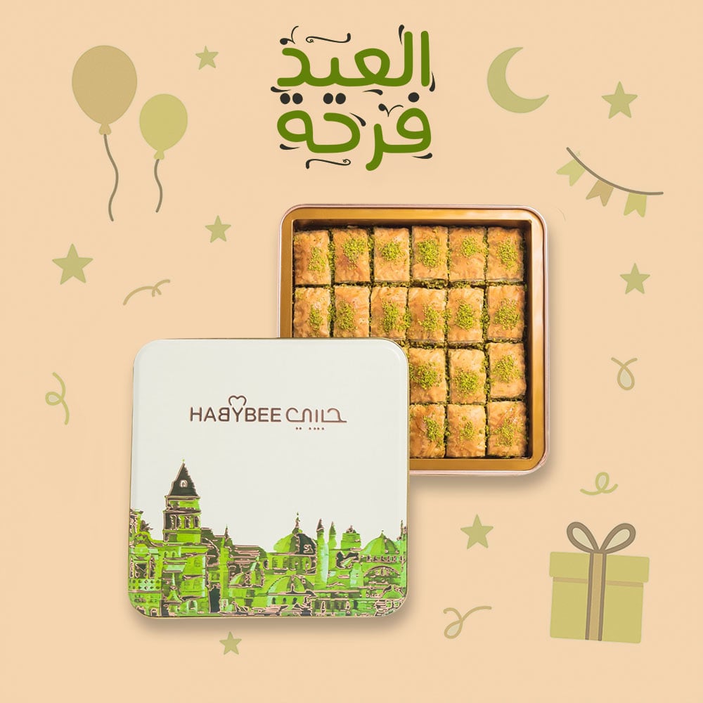 المحضرة بعناية فائقة لتمنحك تجربة استثنائية مع كل قضمة، تتكون من طبقات ذهبية هشة تذوب في الفم، لتترك أثر لا يُمحى بمرور الوقت، ذات تغليف فاخر يبيض وجهك عند التقديم بعلبتها الحديدية المربعة.